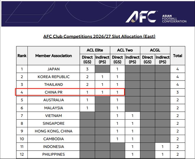 官方:中超下赛季亚冠名额分配为1+1+1,仅1队能直通亚精英正赛