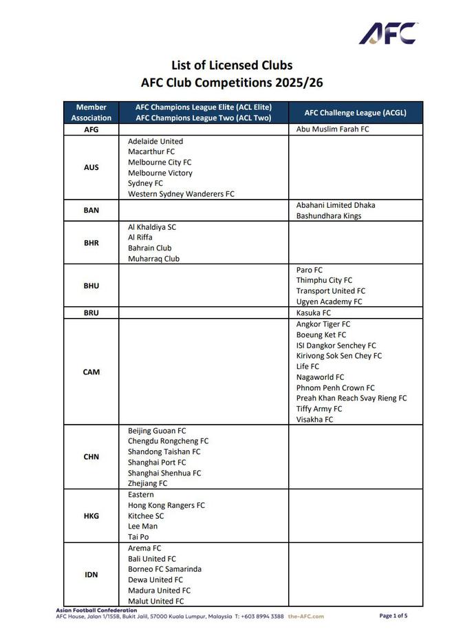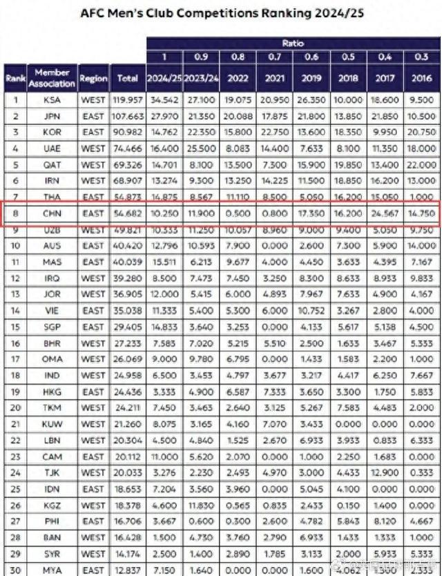亚足联官方公布25/26赛季亚冠赛事准入名单,中超六队入选