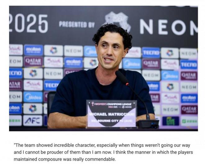 墨尔本城女足主帅:我们表现得非常出色;点球大战是靠运气